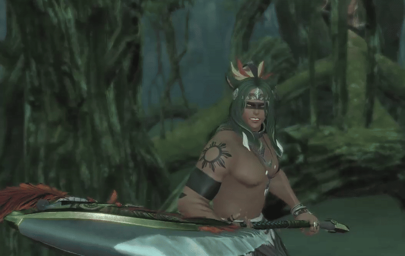 A sigwa beastmaster, he maintains a close bond with his clan’s Hhetso. Power that waits. When he strikes it is sudden, powerful, and deadly. There is a clear preference in intimidating his opponents with an unyielding grounded stance that can withstand even monk-like strength. Preferring close quarters with direct and devastating attacks, like the jaws of the croc, he only needs to catch you once.No longer the young man he once was, every strike shows a conservation of movement only earned through years of training. However, his methods have not changed as he throws himself into combat headlong without an ounce of restraint. His movements are more calculated to withstand his opponents strikes while he learns their cadence. Everything about his fighting style is to endure as he gets in close for that final strike. A fight with him is a war of attrition as he is built to take a beating and outlast, he waits for his opponent to exhaust themselves. The longer you spend in combat with him the greater the chance he will win.A martialist by profession, he wields either an axe or twin blades with the skill of a man who has forged himself in battle. However, grappling is his preferred form of combat, and it’s not uncommon for him to drop his weapons when up close to grab his opponent. Expert throws and pins are his bread and butter in close quarters with the strength to happily break bone when given the chance.In more stealthy situations he uses his gifts with the bow and can often hit his mark dead on from a sizable distance. A longbow with a draw weight that would stagger most, he banks more on a one shot kill than any lengthy battle. Though it should be said that fools thinking they might gain advantage by forcing him into melee will find a beast with bared talons more than happy to play... And that's just his zu.