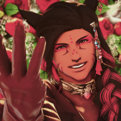 THINGS TO REMEMBER:■ I am a DM for my free company, The Steelgrin Sirens and work a full time job to pay my bills. I love making contacts, but I am not available on a 24/7 basis. My time is important to me, and I do not give it out lightly. Your time is important to me, so I will not ask for it lightly.■ If you catch me just staring at you and I've not said anything, just assume I'm looking over your carrd. I like to tab out a lot when I'm vibin', so never feel afraid to DM me with a hello!■ I'm older at 35+ and I'm not really comfortable roleplaying with folks too much younger than me, so 21+ is mandatory while 25+ is preferred. Sorry kids.■ Communication is very important to continued stories, so OOC chatter is always welcome and encouraged. I like to work through issues rather than ghost.■ If you use 'tribal' as a synonym for savage or feral don't interact with me. Tribes are families first, not some excuse to commit another microaggression. I am not interested in engaging with anyone's racist fanon [That awful viera one or otherwise], any misrepresentation of indigenous people as 'savage/feral/cavemen', or any 'noble savage' characters.■ I make good use of my blacklist function, and have absolutely zero tolerance for fascist bullshit OOC. You can play a character that is Garlean without playing fascist iconography. Expect all the poorly veiled excuses to roleplay fascist pigs get blacklisted.■ If you made it this far and you're interested in some RP hop in my DMs and tell me what your favorite food is and we can start up a conversation!