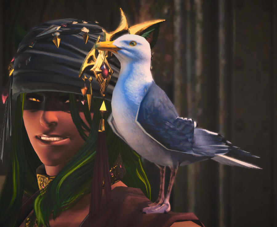 A gull that has decided that Toadie is her perfect match. She preens him and follows him everywhere, and yells at anyone that gets too close. The only other soul able to approach her is Sen'ra.